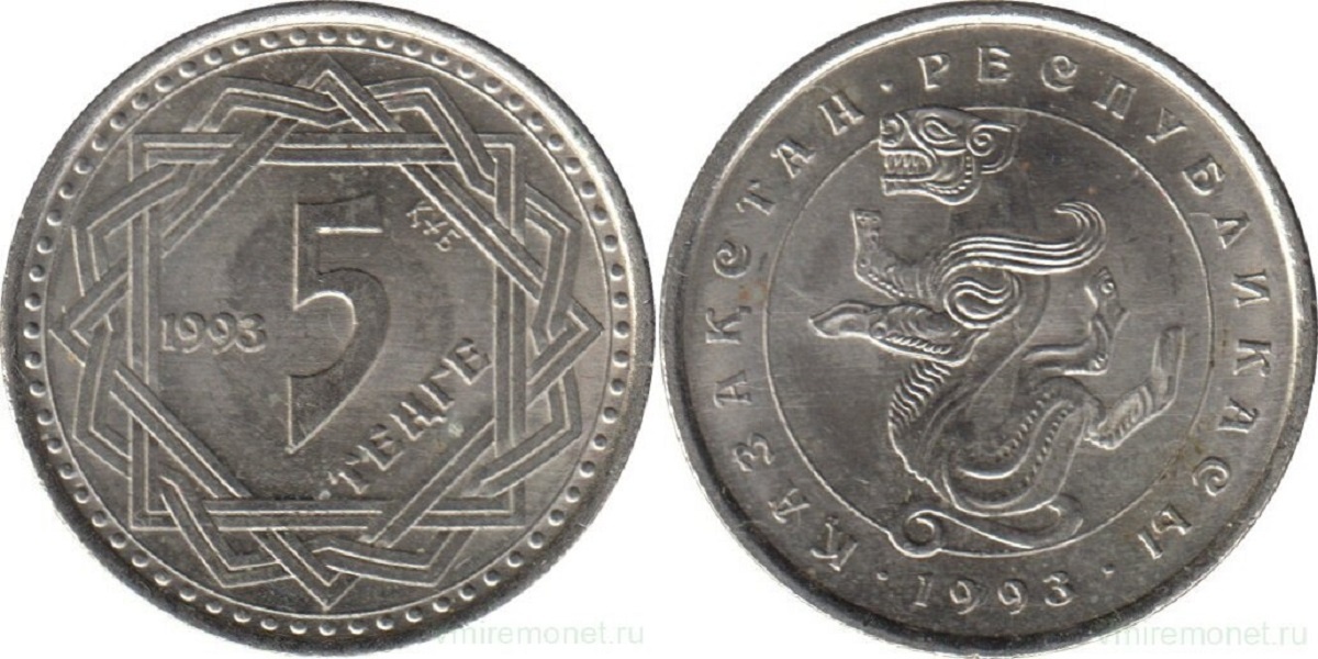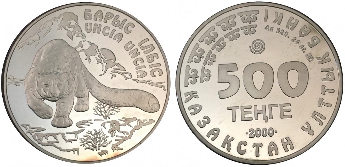 Впервые в постсоветском Казахстане снежный барс появился в 1993 году, на монете номиналом 5 тенге.