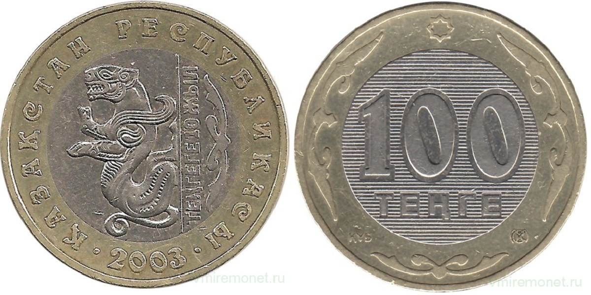 Именно в 1993-м году Казахстан отошел от рубля и обзавелся собственной валютой. Десятилетию этого события посвящена памятная монета с барсом номиналом 100 тенге.