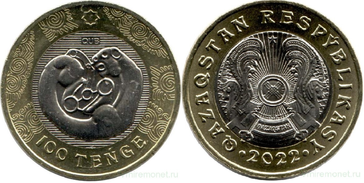 В 2022 году в серии «Сокровища степи», выполненной в сакском стиле, вышла еще одна монета 100 тенге с барсом. Изображение взято из могильника Талды-2 (Центральный Казахстан, VII в. до н. э.). Свернувшийся барс - символ цикличности времени и гармонии с внешним миром.