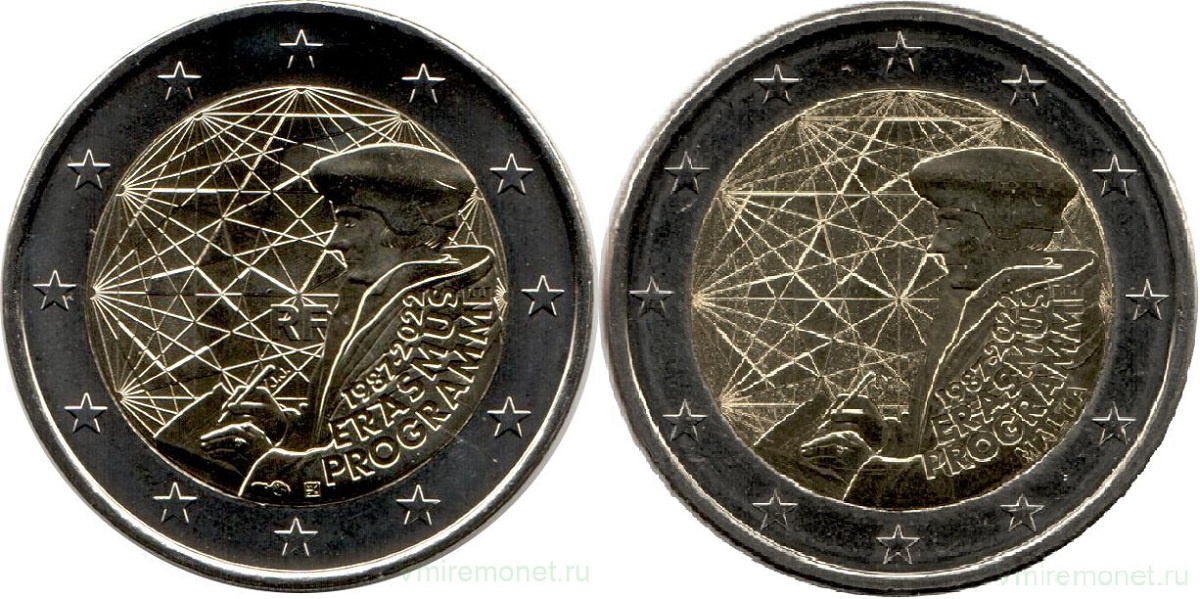 Юбилейные монеты номиналом 2 евро выпускаются с 2004 года. А с 2007 года стали появляться и общеевропейские серии двух-евровиков — они выпускаются странами Евросоюза, которые используют евро в качестве национальной валюты, посвящены одному событию, затрагивающему весь Евросоюз, и имеют единый дизайн. При этом естественно, что на такой монете каждая страна ставит свое название и клеймо монетного двора. Есть и еще отличия, но об этом позже.