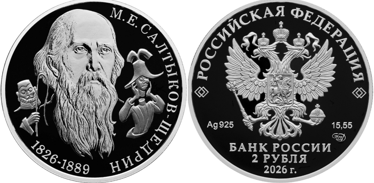 Традиционно в начале года выходит и первая из монет серии «Выдающиеся личности России» (серебряные двухрублевики). Серию открыла монета, посвященная 250-летию со дня рождения Михаила Салтыкова-Щедрина. На ней изображены профиль великого русского писателя и персонажи из его сказки «История одного города».
