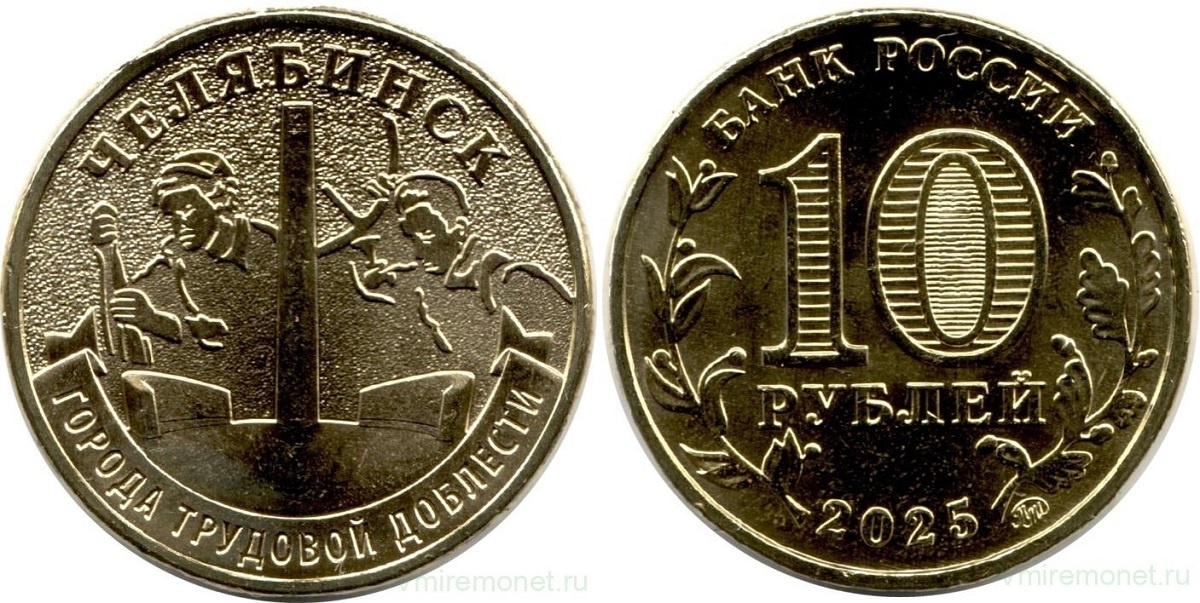 А в серии монет «Города трудовой доблести» пока еще было только 20 выпусков. В основном на реверсах изображают памятники подвигу трудящихся. Но вот в прошлом году вышла монета «Челябинск» со стеллой Трудовой доблести, поэтому и на других монетах мы тоже можем ожидать подобное решение. Тем паче, что такие стелы уже успели уставить в Коломне и Пензе.