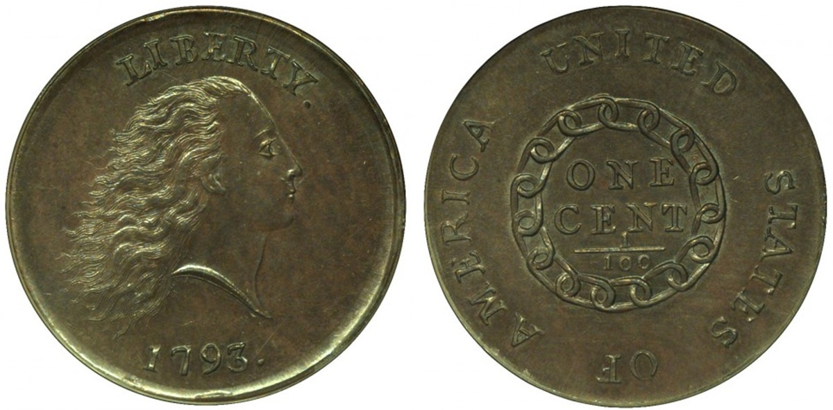 Предлагаем вспомнить историю славного «пенни», начавшуюся в 1793 году с «цепного цента», на котором были изображены голова Свободы (на аверсе) и цепь из 13 звеньев, символизирующих первоначальные штаты (на реверсе). Монеты была довольно крупной, 27 мм, и медной, на нее можно было купить свечку или немного сладостей на развес.
