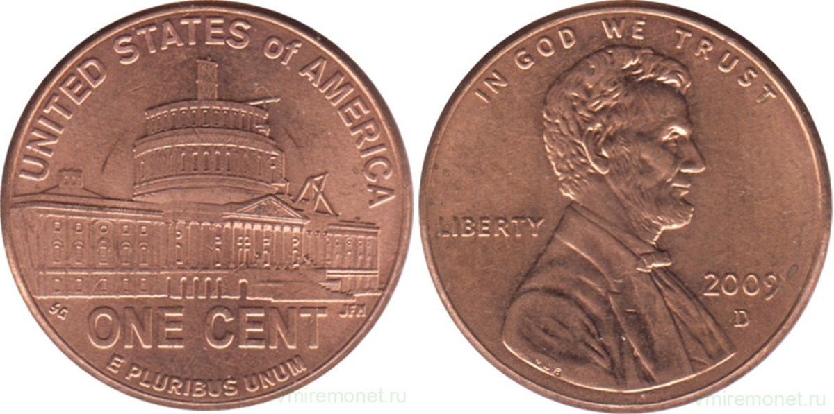 В 1909-м году Свободу в перьях заменил портрет Авраама Линкольна. Это не случайно: дизайн монет кардинально не менялся уже полвека, а в 1909-м отмечали столетие со дня рождения легендарного президента. В связи с чем в Министерство финансов поступало множество писем от граждан с просьбой выпустить монеты с изображением Линкольна. Однако до сих пор обиходные монеты не содержали изображений реальных людей, только аллегории Свободы. Рузвельт решил нарушить нумизматическую традицию, изменив монету номиналом в один цент.