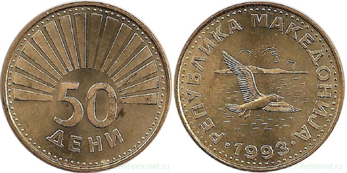 Свою валюту страна получила в 1992 году: македонский денар заменил югославский динар по курсу 1:1. Один денар формально равен 100 дени, но с 2013 года монеты в дени не используются в качестве средства платежа. Собственно, и была-то одна монета номиналом 50 дени с изображением летящей озерной чайки.