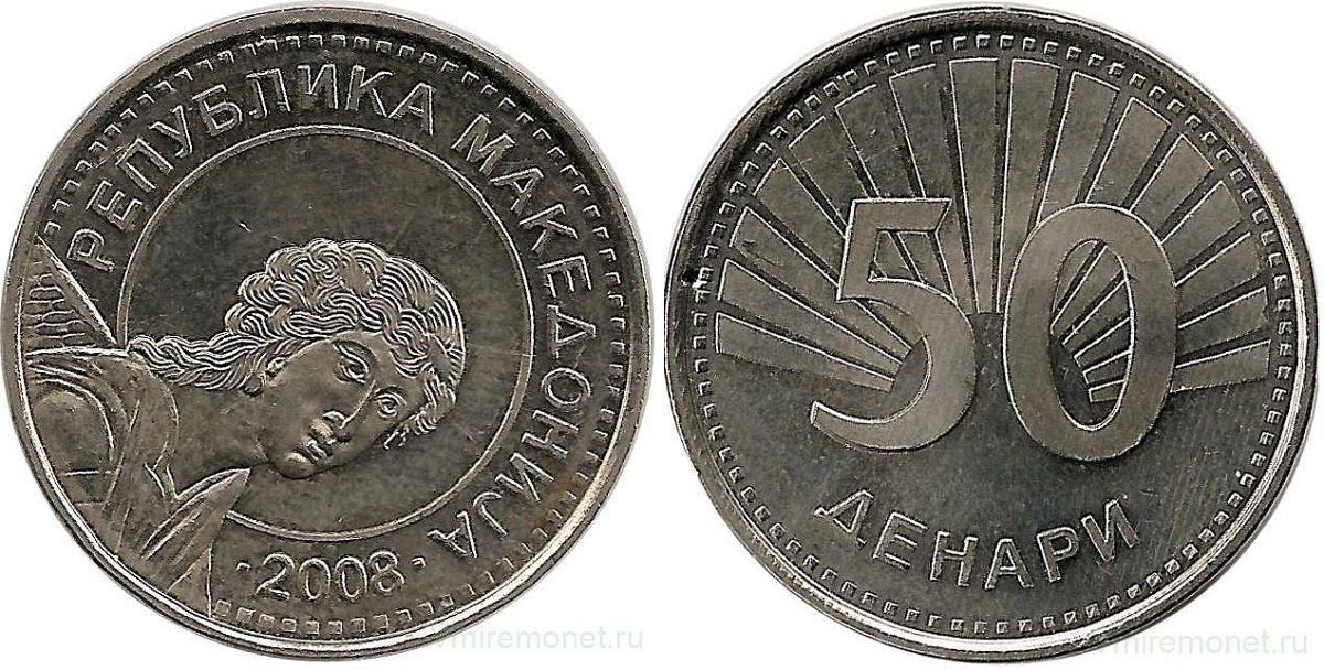 Так что рассмотрим монеты, которые сегодня в ходу. Своего монетного двора в Северной Македонии нет, монеты чеканятся в Германии и Швейцарии. В обращении находятся пять номиналов: 1, 2, 5, 10 и 50 денаров. Причем номиналы 1, 2, и 5 денаров появились в 1993 году, а 10 и 50 денаров в 2008 году. С 2016 года материал изготовления для 1, 2 и 5 денаров изменился на сталь, покрытую латунью, монеты данных номиналов стали магнитными.
