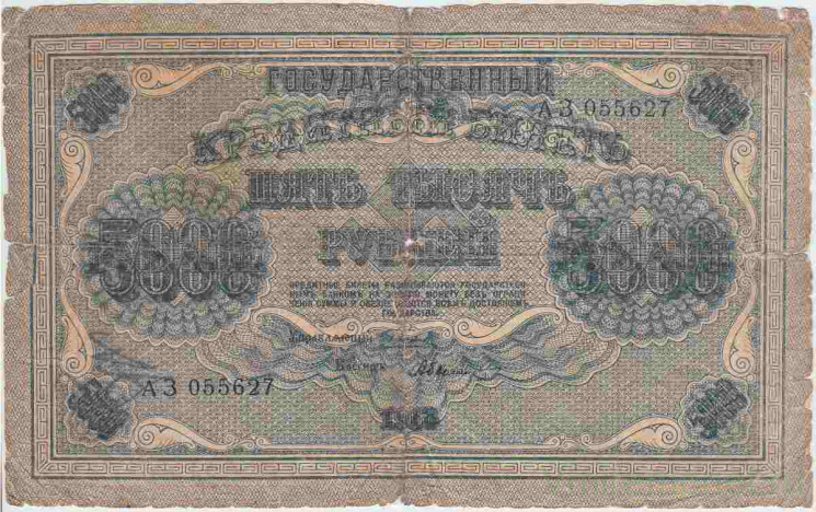 0 отзывов к товару Банкнота. РСФСР. 5000 рублей 1918 год. (Пятаков - Былинский), в/з горизонтально.