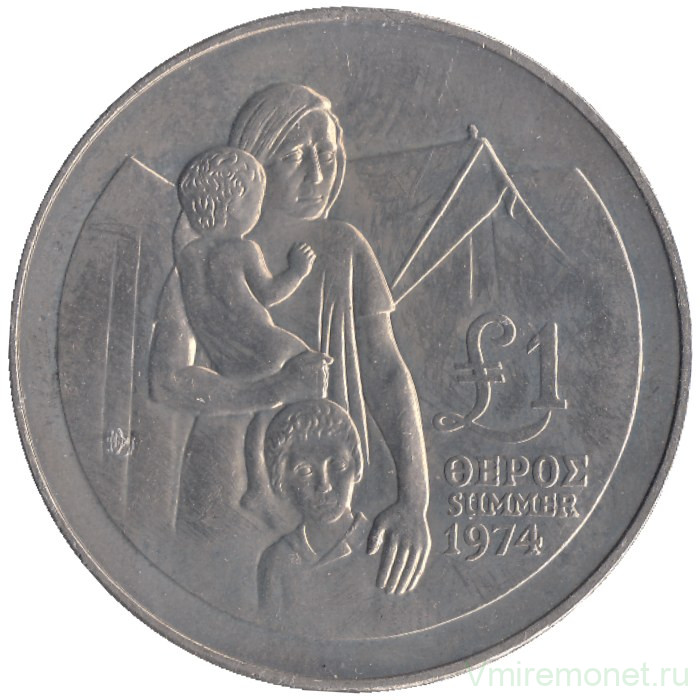 Монета. Кипр. 1 фунт 1976 год. Памяти беженцев.