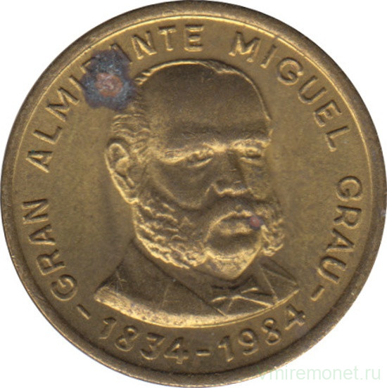 Монета. Перу. 100 солей 1984 год. 150 лет со дня рождения адмирала Мигеля Грау.