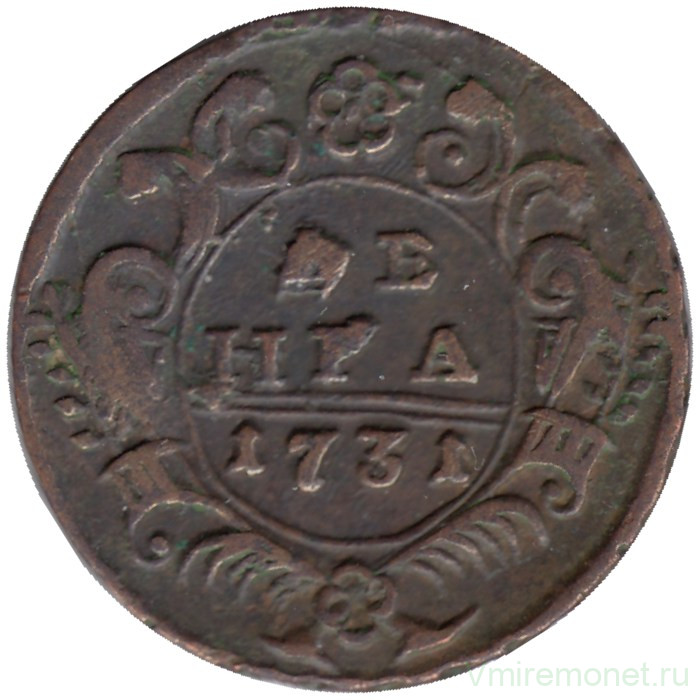 Монета. Россия. Деньга 1731 год. Двойная черта над датой.