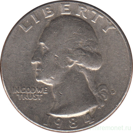 Монета. США. 25 центов 1984 год. Монетный двор D.